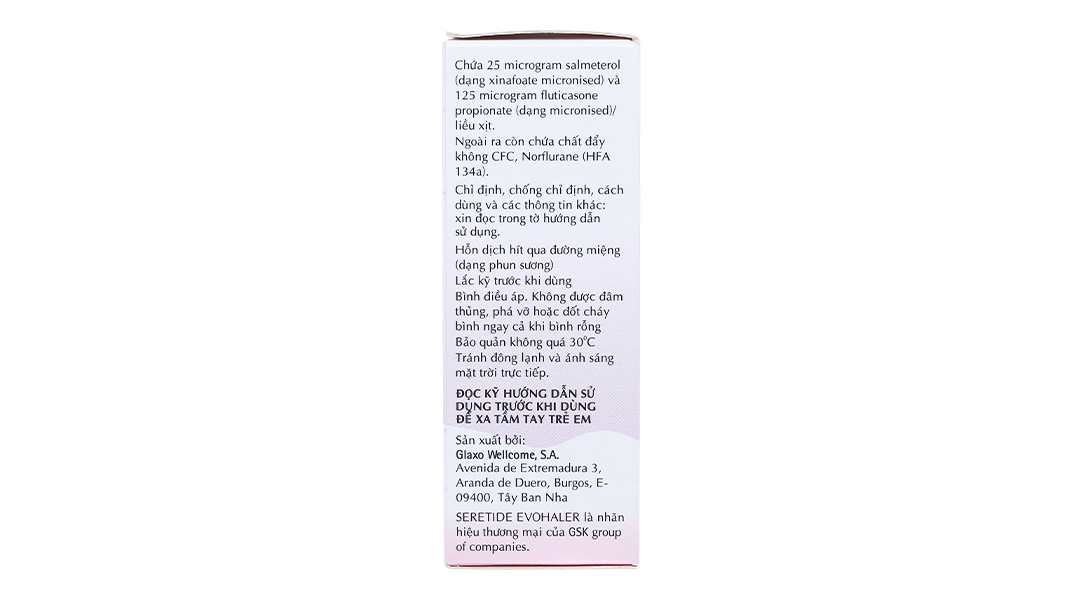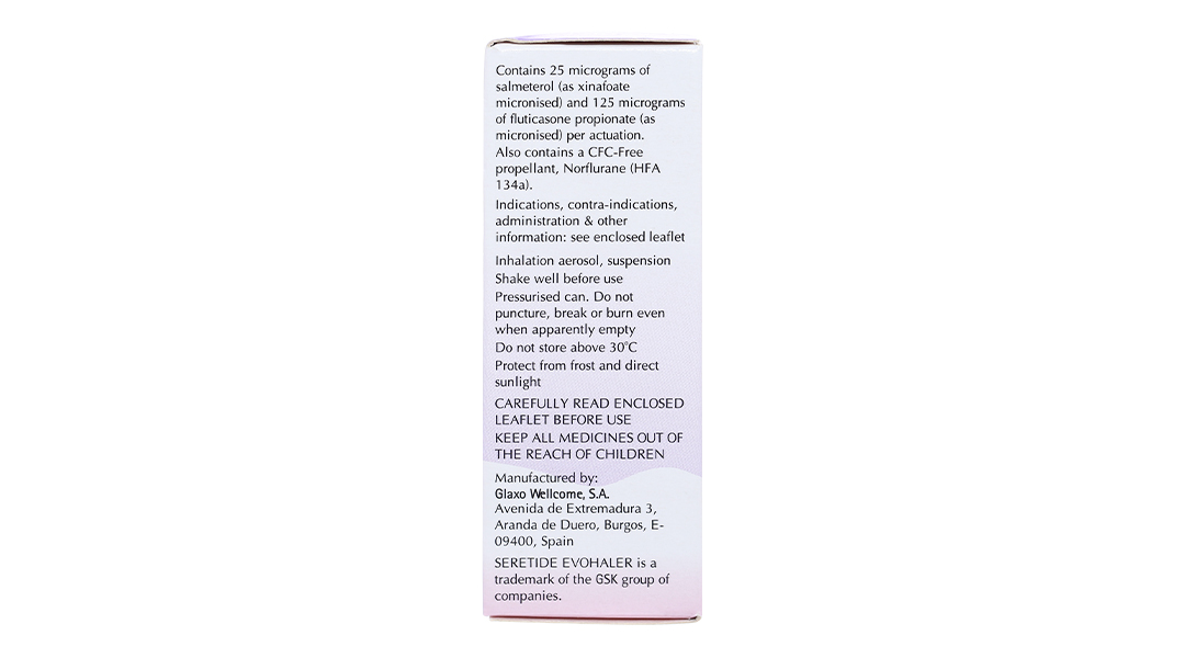 Thuốc xịt khí dung Seretide Evohaler DC 25/125mcg trị hen suyễn bình 120 liều xịt