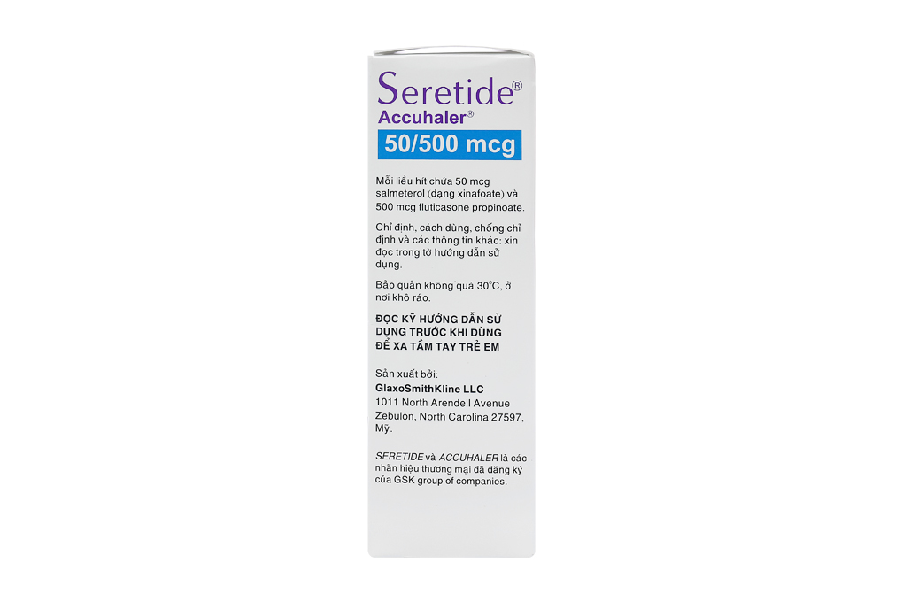 – Thận trọng khi sử dụngSERETIDE Accuhaler không phải là thuốc dùng để giảm triệu chứng cấp tính, mà trong trường hợp này cần dùng một thuốc giãn phế quản tác dụng nhanh và ngắn (thí dụ salbutamol). Nên khuyên bệnh nhân luôn có sẵn thuốc giảm triệu chứng bên mình. Tăng sử dụng thuốc giãn phế quản tác dụng ngắn để giảm triệu chứng cho thấy việc kiểm soát bệnh đang xấu đi và bệnh nhân nên đến bác sĩ để kiểm tra. Kiểm soát hen xấu đi đột ngột và tăng dần là nguy cơ đe dọa mạng sống và bệnh nhân cần được bác sĩ khám lại. Nên cân nhắc tăng liều corticosteroid. Bệnh nhân cũng nên được khám lại khi liều SERETIDE đang dùng không đủ kiểm soát hen. Không nên ngừng sử dụng SERETIDE một cách đột ngột ở bệnh nhân hen do nguy cơ bị cơn kịch phát, nên giảm liều từ từ dưới sự giám sát của bác sĩ. Đối với bệnh nhân COPD, ngừng điều trị có thể gây mất bù có triệu chứng và nên được bác sĩ theo dõi. Đã có sự gia tăng số lượng báo cáo về viêm phổi trong những nghiên cứu trên bệnh nhân COPD dùng SERETIDE (xem Tác dụng không mong muốn). bác sĩ nên luôn cảnh giác theo dõi khả năng xảy ra viêm phổi trên những bệnh nhân COPD vì các đặc điểm lâm sàng của viêm phổi và đợt kịch phát thường trùng lặp nhau. Cũng như mọi thuốc hít chứa corticosteroid, nên thận trọng khi dùng SERETIDE ở bệnh nhân bị lao phổi thể hoạt động hoặc thể yên lặng. Nên dùng SERETIDE thận trọng ở bệnh nhân bị nhiễm độc giáp. Các tác động trên tim mạch như tăng huyết áp tâm thu và nhịp tim thỉnh thoảng có thể gặp ở tất cả các thuốc giống giao cảm, đặc biệt khi dùng liều cao hơn liều điều trị. Chính vì lý do này, nên sử dụng SERETIDE thận trọng ở bệnh nhân đang có sẵn bệnh tim mạch. Giảm kali huyết thanh thoáng qua có thể xảy ra với tất cả các thuốc giống giao cảm tại liều cao hơn liều điều trị. Vì vậy, nên sử dụng thận trọng SERETIDE trên những bệnh nhân dễ có khả năng hạ nồng độ kali huyết thanh. Tác động toàn thân có thể xảy ra với bất kỳ corticosteroid hít nào, nhất là khi dùng liều cao trong thời gian dài; những tác động này thường ít xảy ra hơn nhiều so với khi dùng corticosteroid dạng uống (xem phần Quá liều). Tác động toàn thân có thể bao gồm hội chứng Cushing, các dấu hiệu Cushing, ức chế thượng thận, chậm tăng trưởng ở trẻ em và thanh thiếu niên, giảm mật độ khoáng xương, đục thủy tinh thể và tăng nhãn áp (glaucoma). Do đó điều quan trọng đối với bệnh nhân hen là nên điều chỉnh liều corticosteroid đến liều thấp nhất mà vẫn duy trì kiểm soát bệnh hiệu quả. Cần luôn nghĩ đến khả năng suy giảm đáp ứng thượng thận trong trường hợp cấp cứu và một số tình huống nhất định có thể gây stress và cân nhắc điều trị bằng corticosteroid thích hợp (xem phần Quá liều). Nên kiểm tra thường xuyên chiều cao của trẻ khi điều trị bằng corticosteroid hít kéo dài. Vì có khả năng đáp ứng thượng thận suy giảm, nên cần đặc biệt thận trọng khi chuyển bệnh nhân từ điều trị steroid uống sang điều trị fluticasone propionate hít, và cần kiểm tra chức năng tuyến thượng thận thường xuyên. Theo những chỉ dẫn về fluticasone propionate hít, ngừng điều trị toàn thân cần thực hiện từ từ và bệnh nhân nên mang theo tấm thẻ cảnh báo về steroid chỉ rõ những điều có thể cần thiết cho điều trị bổ sung trong trường hợp khẩn cấp. Có rất ít báo cáo về hiện tượng tăng mức đường huyết (xem phần Tác dụng không mong muốn) và cần thận trọng khi kê đơn cho những bệnh nhân có tiền sử bị đái tháo đường. Trong thời gian sử dụng thuốc sau khi thuốc được lưu hành, đã có báo cáo về tương tác thuốc đáng kể trên lâm sàng ở những bệnh nhân dùng fluticasone propionate và ritonavir dẫn đến tác dụng toàn thân của corticosteroid bao gồm hội chứng Cushing và ức chế thượng thận. Do đó nên tránh dùng đồng thời fluticasone propionate và ritonavir trừ khi lợi ích điều trị vượt trội nguy cơ tác dụng phụ toàn thân của corticosteroid (xem mục Tương tác thuốc). Dữ liệu từ một nghiên cứu lớn ở Mỹ (SMART) so sánh tính an toàn của Serevent (salmeterol – một thành phần của SERETIDE) hoặc giả dược được thêm vào liệu pháp thông thường cho thấy có sự tăng đáng kể số ca tử vong liên quan đến hen ở bệnh nhân dùng Serevent (salmeterol). Dữ liệu từ nghiên cứu này đã gợi ý cho thấy nhóm bệnh nhân người Mỹ gốc Phi có nguy cơ cao hơn bị các biến cố liên quan đến đường hô hấp nghiêm trọng hoặc tử vong khi sử dụng Serevent (salmeterol) so với nhóm giả dược, vẫn chưa biết liệu điều này là do các yếu tố được di truyền hay các yếu tố khác. Nghiên cứu SMART không phải được thiết kế để xác định liệu việc sử dụng đồng thời corticosteroid hít có làm thay đổi nguy cơ tử vong liên quan đến hen hay không. (Xem mục Các nghiên cứu lâm sàng). Trong một nghiên cứu về tương tác thuốc đ