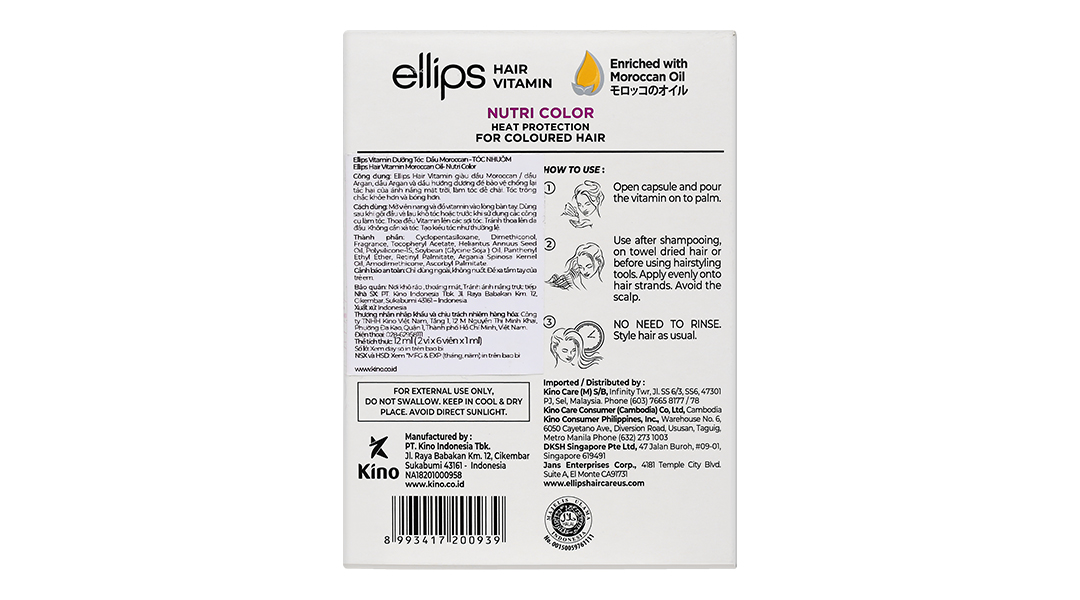 Ellips Hair Vitamin giàu dầu Moroccan/dầu Argan, dầu Argan và dầu hướng dương để bảo vệ chống lại tác hại của ánh nắng mặt trời, làm tóc dễ chải. Tóc trông chắc khỏe hơn và bóng hơn.