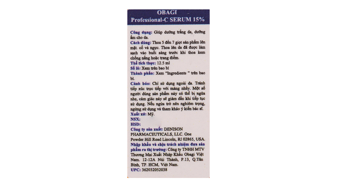 Serum Obagi Professional-C 15% dưỡng sáng da và chống oxy hóa chai 12.5ml