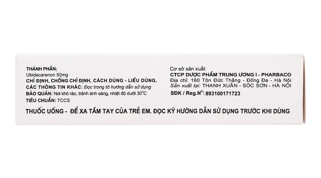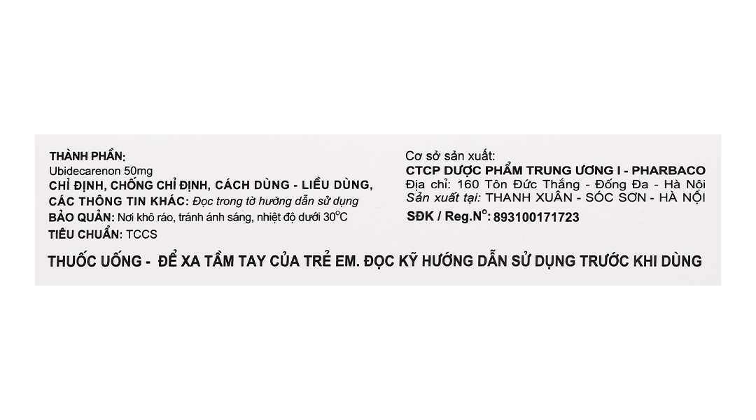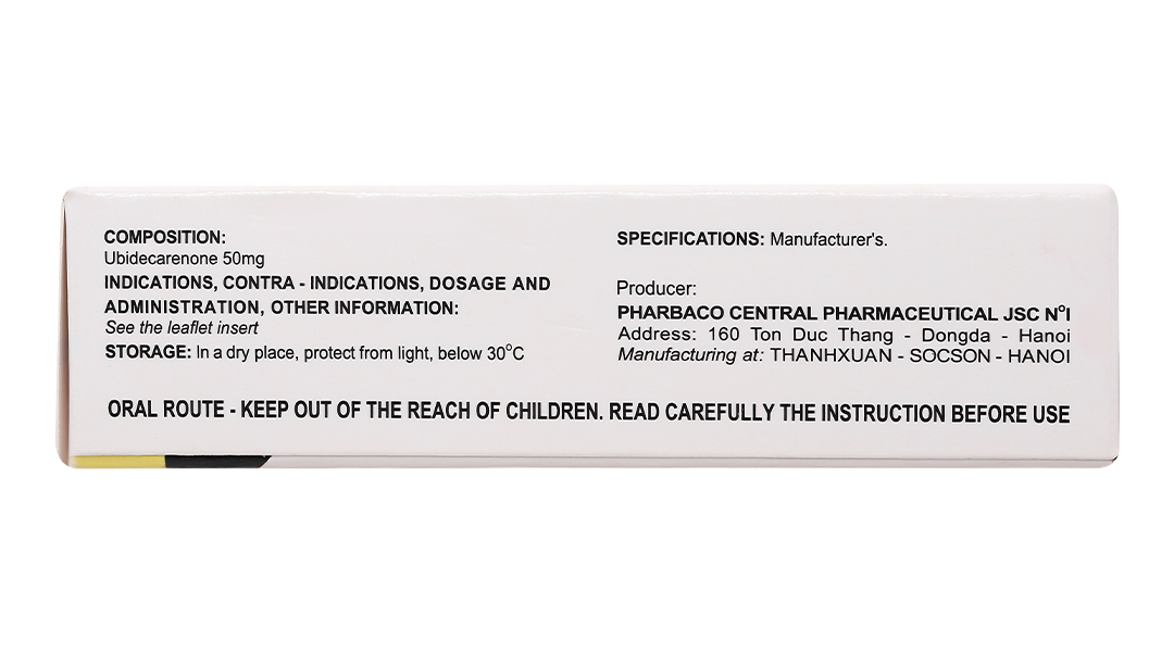 - Thành phần được chất: Ubidecarenon (Coenzym Q10) 50mg.