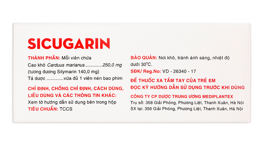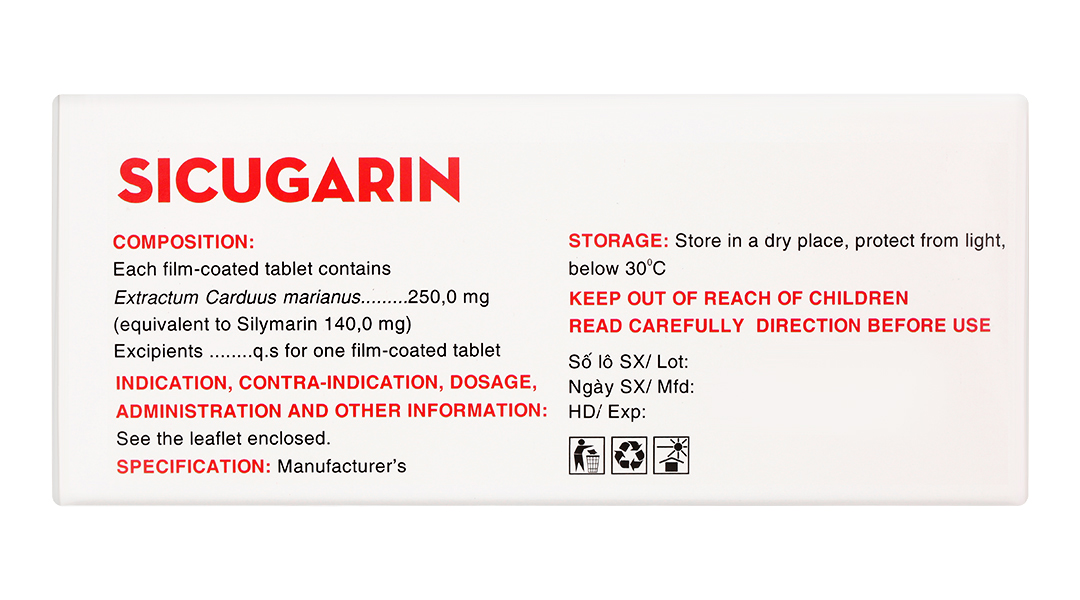 - Cao khô Carduus marianus 250,0mg (tương đương 140,0mg silymarin).