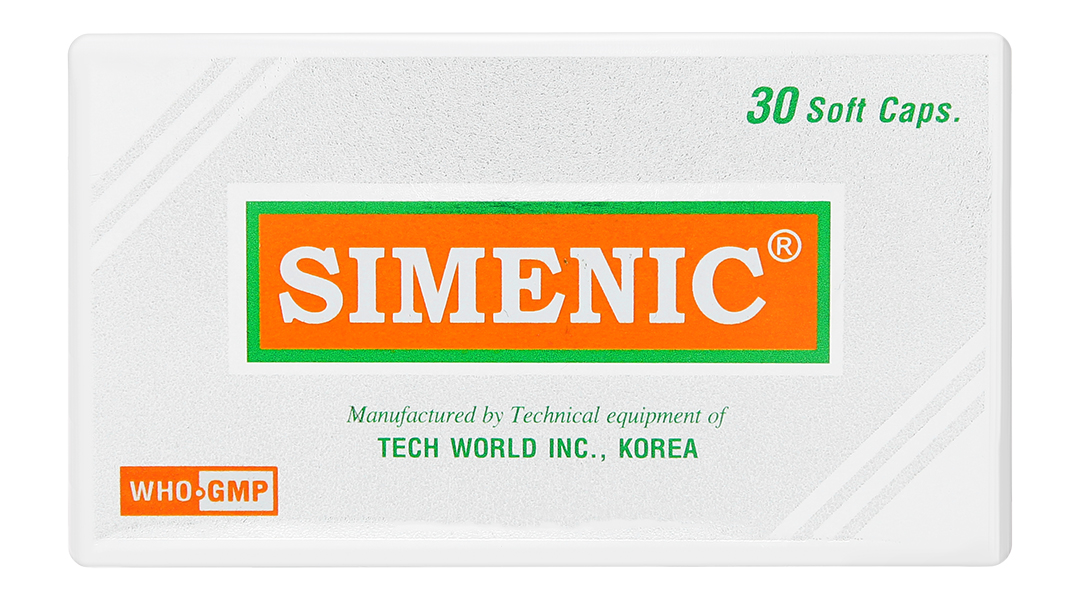 – Simethicon làm giảm sức căng bề mặt các bong bóng hơi, khiến cho chúng kết hợp lại. Nó được sử dụng để loại bỏ hơi, khí hay bọt ở đường tiêu hóa trước khi chụp X-quang và để làm giảm căng bụng và khó tiêu do hơi dư thừa trong đường tiêu hóa.