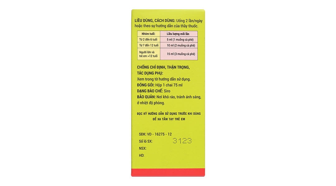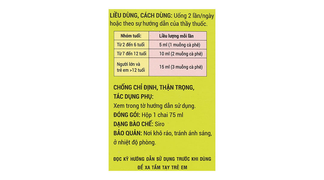 Công dụngGiảm các triệu chứng ho do cảm lạnh, cảm cúm ho khan, ho do dị ứng, sổ mũi, nghẹt mũi,...