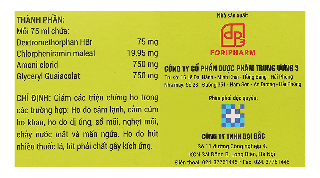 Nhà sản xuấtDược Phẩm Trung ương 3