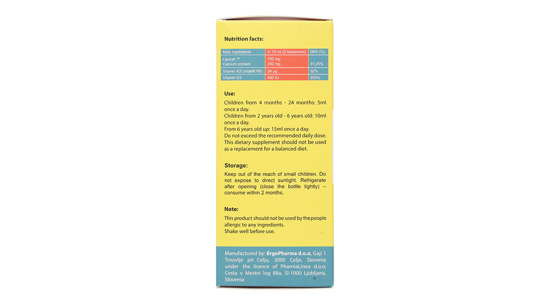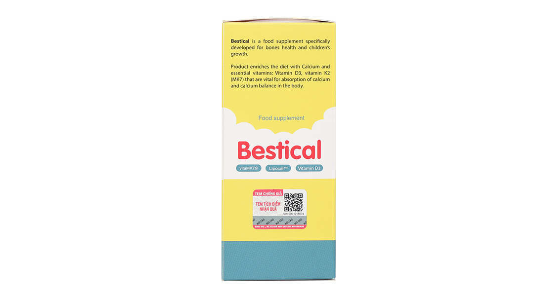 Hoạt chấtVitamin K2 (VitaMk7 - menaquinone), Vitamin D3 (cholecalciferol), Lipocal (bao gồm tricalcium phosphate, lecithin từ đậu nành) (tương đương 250mg canxi)
