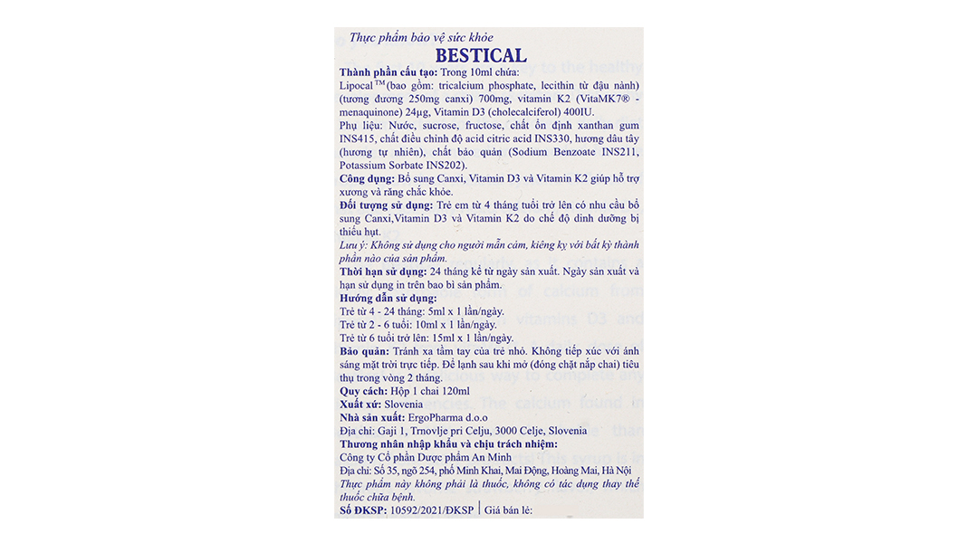 Siro ErgoPharma Bestical hỗ trợ xương và răng chắc khỏe chai 120ml