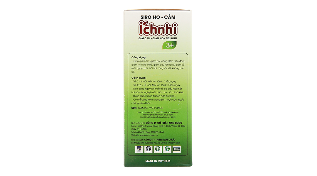 - Được sản xuất theo quy trình đạt chuẩn GMP, ISO và HACCP, Siro ho cảm Ích Nhi 3+ đảm bảo an toàn, chất lượng và hiệu quả cho sức khỏe của trẻ.