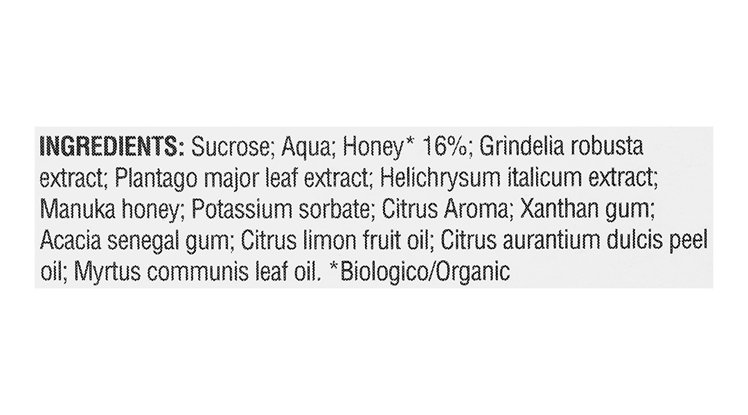 Hoạt chấtCúc bất tử, Cam, Dứa, Grindelia, Chanh, Mật ong, Mã đề