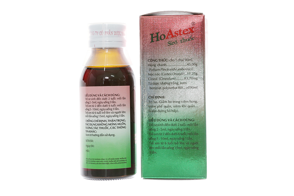 Siro HoAstex trị ho, giảm ho trong viêm họng, viêm phế quản, khí quản chai 90ml