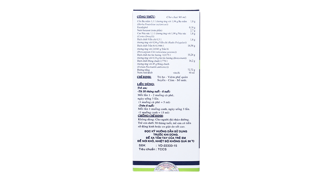 Eucalyptol 0,18g; Natri benzoat (toàn phần) 2,7g.