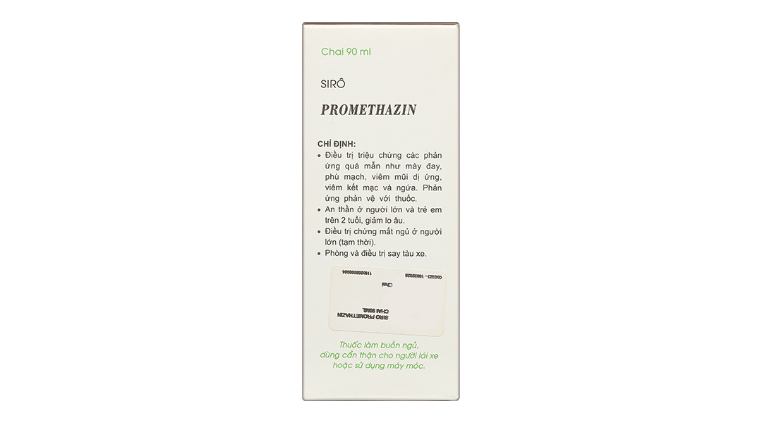 – Thai kỳ và cho con búSử dụng thuốc cho phụ nữ có thai: Chưa xác định được tính an toàn khi sử dụng thuốc trong thời kỳ mang thai. Chỉ nên dùng khi lợi ích điều trị xác đáng hơn nguy cơ có thể xảy ra cho thai nhi. Sử dụng thuốc cho phụ nữ cho con bú: Thận trọng khi dùng thuốc vì nguy cơ tác dụng không mong muốn (như kích động hoặc kích thích khác thường) có thể xảy ra ở đứa trẻ. Vì vậy nên ngừng cho con bú nếu người mẹ dùng promethazine. Thuốc có thể ức chế tiết sữa do tác dụng kháng cholinergic. – Khả năng lái xe và vận hành máy mócVì promethazine gây buồn ngủ nên tránh dùng thuốc khi đang lái xe hoặc vận hành máy móc. – Tương tác thuốcTương tác của thuốc: