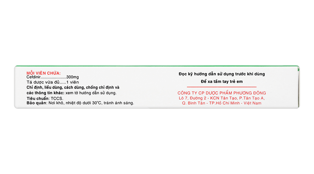 - Cefdinir chuyển hóa không đáng kể và thuốc được thải trừ qua đường tiểu chủ yếu qua thận với thời gian bán thải từ 1,7 – 1,8 giờ. Sự phân bố theo đường uống khoảng 300mg hoặc 600mg vào khoảng 11,6 hoặc 15,5 ml/phút và 18,4 hoặc 11,6% của liều này.