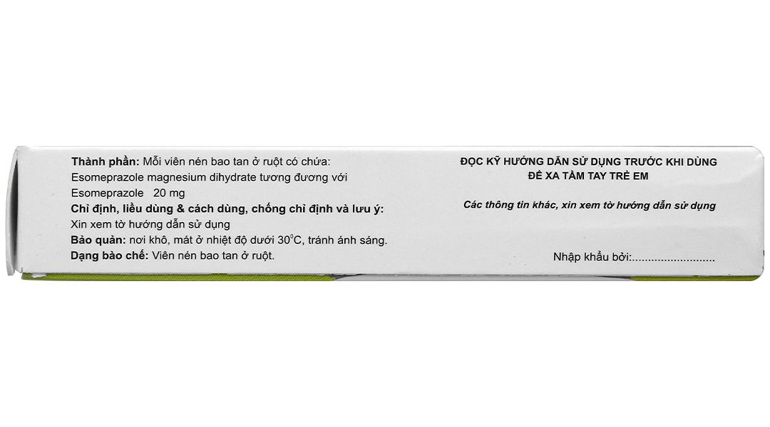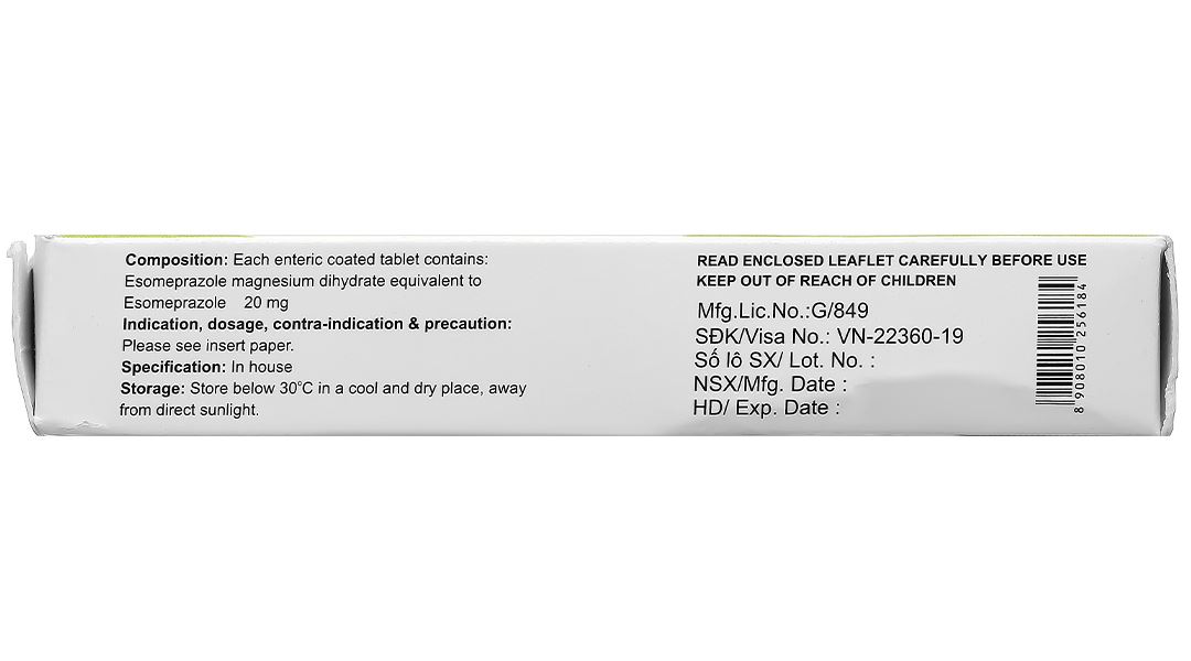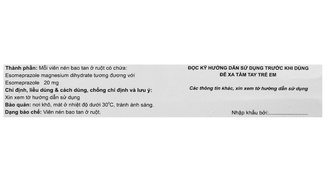 - Dược chất: Esomeprazole magnesium dihydrate tương đương với esomeprazole 20mg.