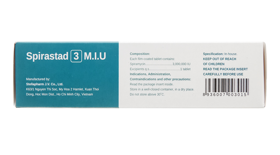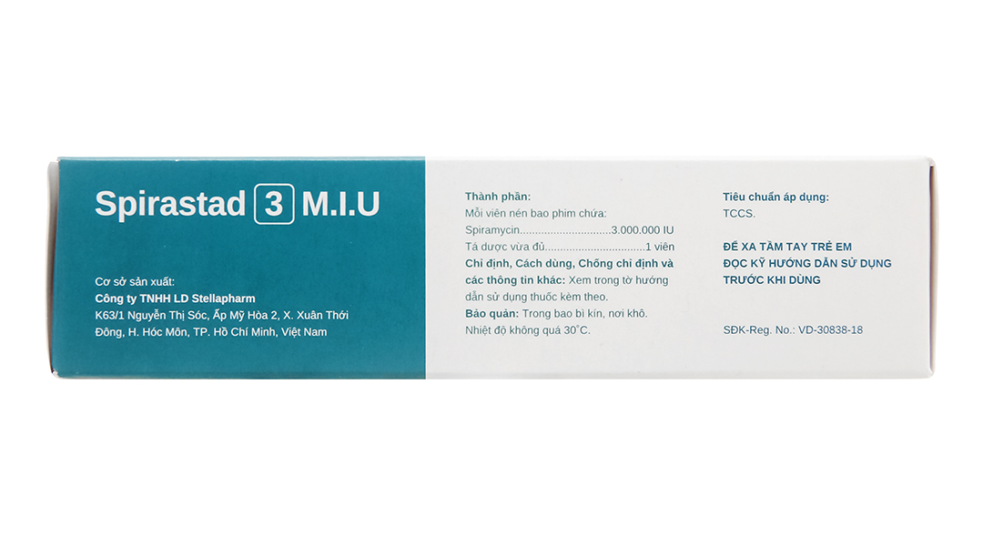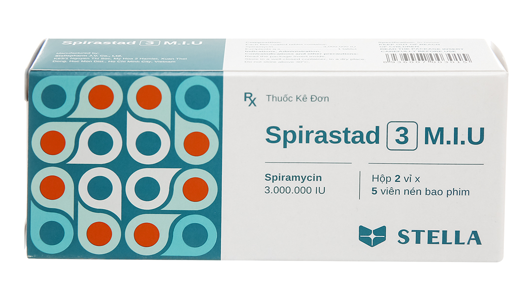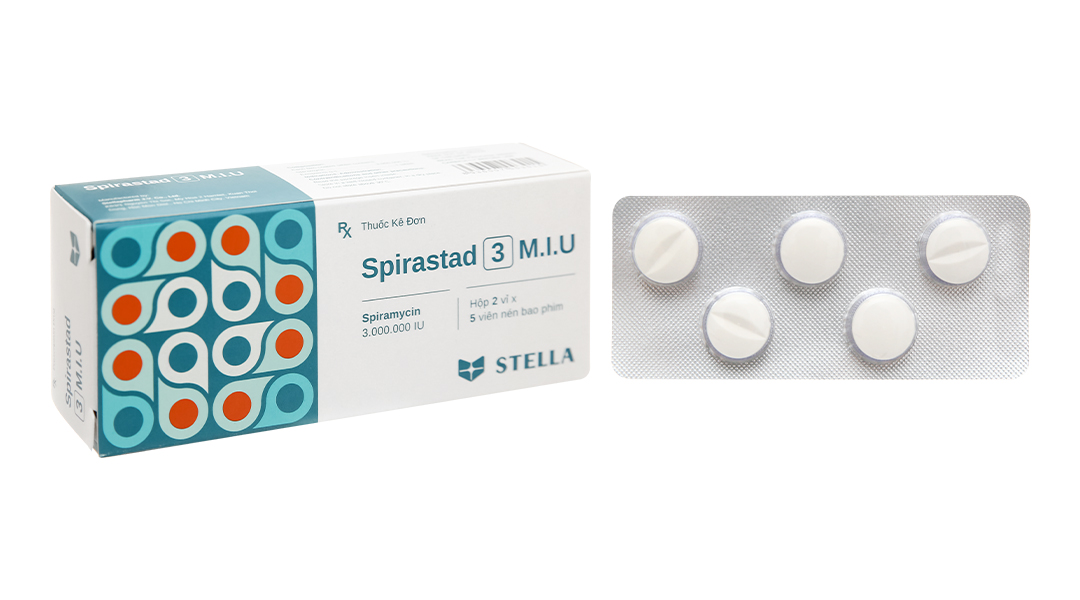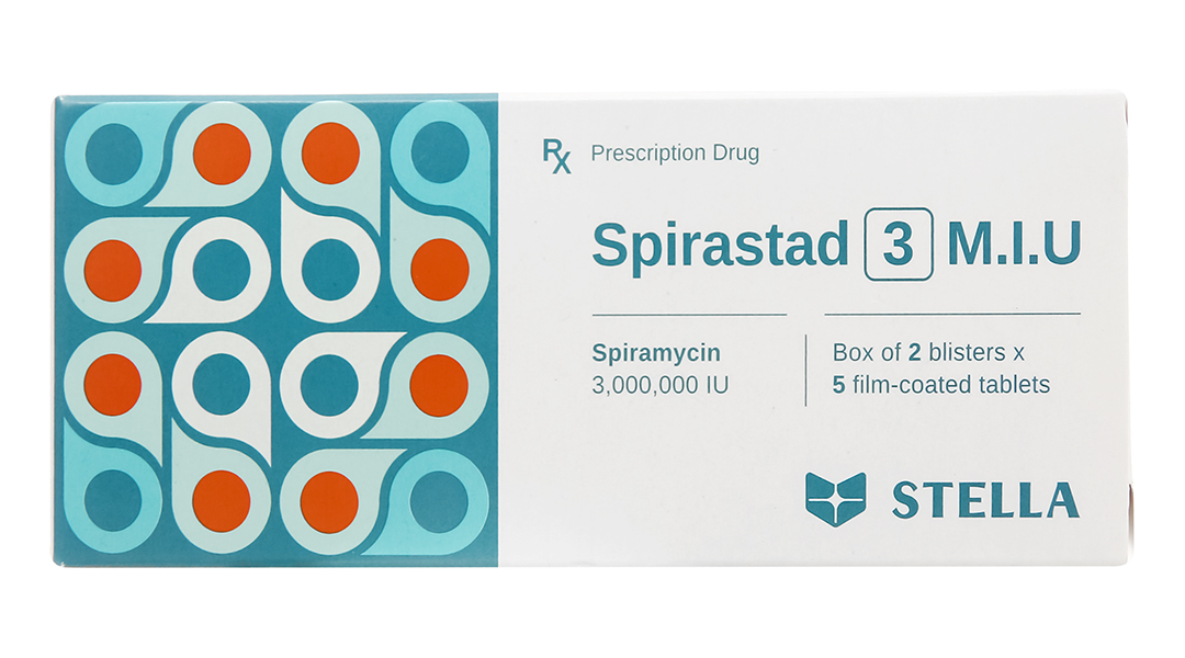 Spirastad 3 M.I.U trị nhiễm khuẩn đường hô hấp, da, và sinh dục (2 vỉ x 5 viên)