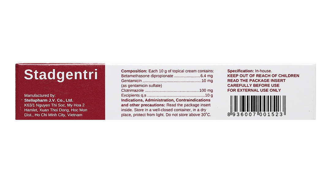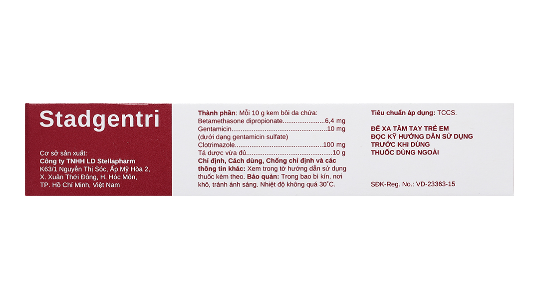 Kem bôi Stadgentri trị nấm, bệnh về da có biến chứng nhiễm trùng tuýp 10g