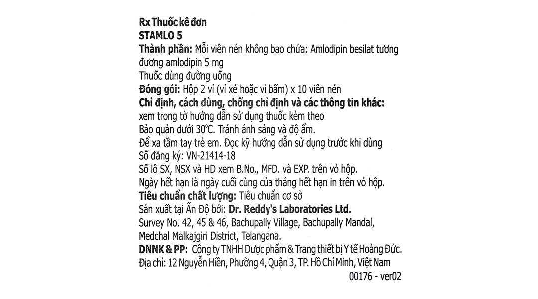 Stamlo 5 trị tăng huyết áp và thiếu máu cục bộ cơ tim (2 vỉ x 10 viên)