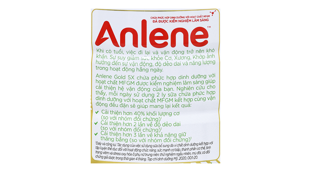 Sữa bột Anlene Gold 5X cải thiện hệ vận động cho người trên 40 tuổi hương vani (800g)