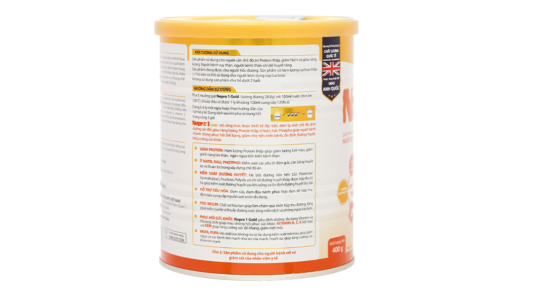 Sữa bột cho người lớn Nepro 1 Gold với công thức được thiết kế đặc biệt, đem lại một chế độ dinh dưỡng cân đối, giàu năng lượng, protein thấp, ít Natri, Kali, Photpho giúp người bệnh nhanh chóng phục hồi thể trạng, giảm nhẹ tiến triển bệnh, ổn định đường huyết, tăng cường sức khỏe.