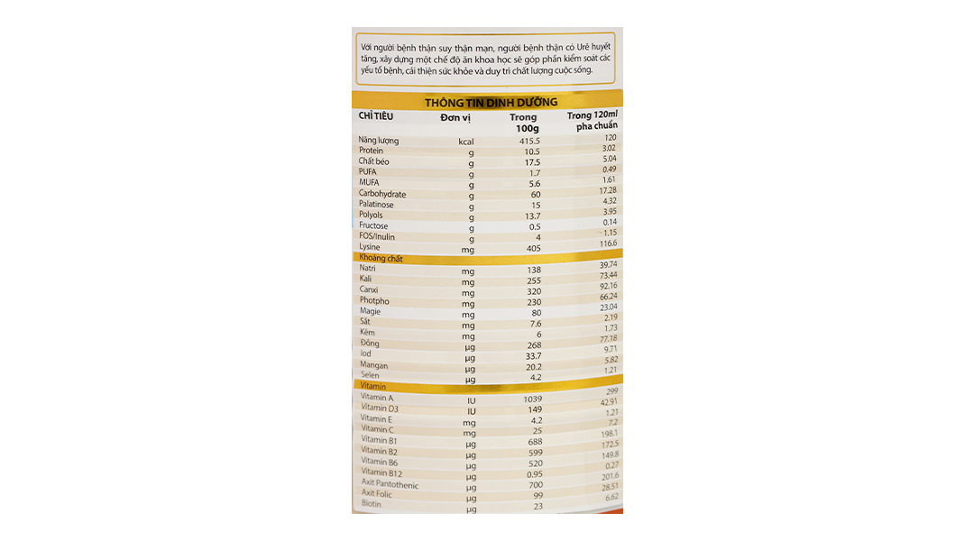 - Sản phẩm sử dụng cho người cần chế độ ăn Protein thấp, giảm Natri và giàu năng lượng.