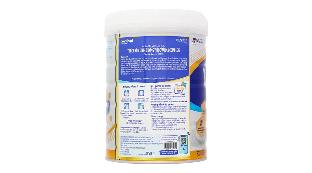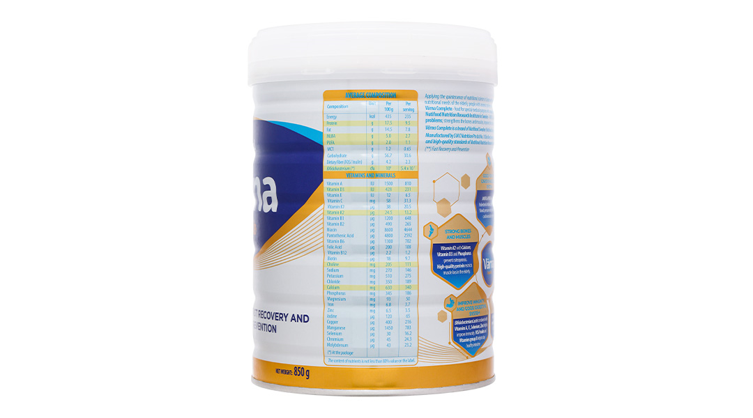 Sữa bột Nutifood Varna Complete 850g áp dụng công thức FRP chuyên biệt được nghiên cứu và được phát triển bởi Viện nghiên cứu dinh dưỡng Nutifood Thụy Điển – NNRIS giúp hỗ trợ phòng ngừa và phục hồi sức khỏe nhanh. Sản phẩm sữa bột có nguồn dinh dưỡng thuần khiết, hương vị ngọt thanh thơm ngon giúp xương và cơ chắc khỏe, tăng cường hệ miễn dịch và hệ tiêu hóa, đồng thời cải thiện hệ tim mạch và hỗ trợ sức khỏe não bộ.