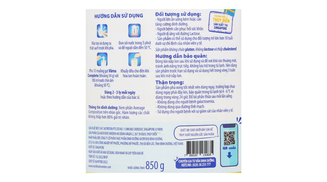 – Värna Complete là sản phẩm đặc biệt có thể sử dụng nuôi ăn qua ống thông theo sự hướng dẫn của bác sĩ hoặc chuyên viên dinh dưỡng. Thể tích sử dụng và lưu lượng được điều chỉnh tùy thuộc vào tình trạng và khả năng dung nạp của người bệnh.