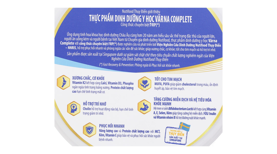 Với hơn 20 năm nghiên cứu và tìm hiểu về nhu cầu dinh dưỡng riêng biệt của người trưởng thành, người biếng ăn và người bệnh tại Việt Nam bởi các chuyên gia dinh dưỡng hàng đầu của Nutifood kết hợp cùng các nhà khoa học dinh dưỡng Châu Âu đã cho ra đời sản phẩm sữa bột cho người lớn Värna Complete phục vụ cho mục đích dinh dưỡng y tế.