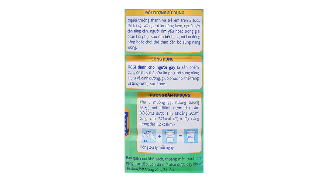 Sữa bột Oggi giúp tăng cân hiệu quả cho người lớn, trẻ em trên 3 tuổi (900g)