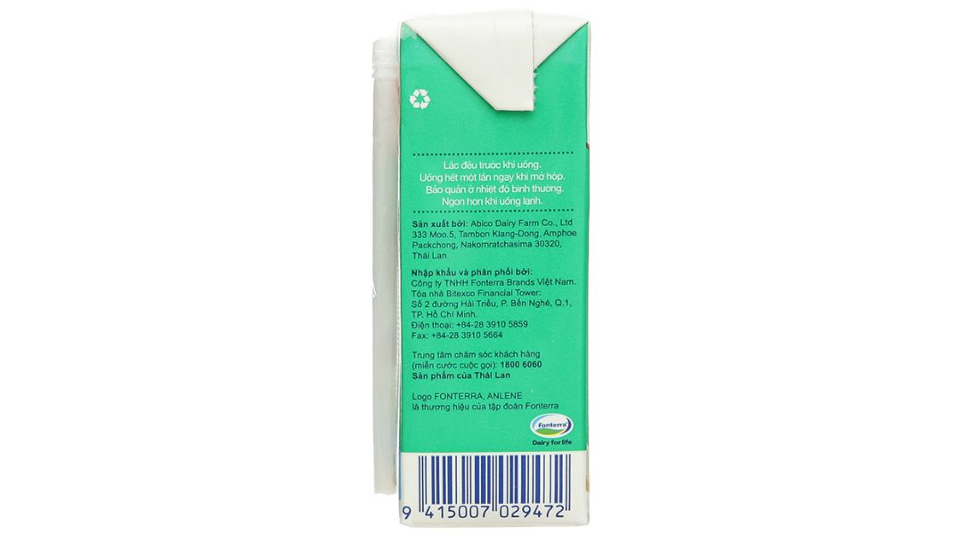 Sữa hoàn nguyên (nước (86%); sữa bột không béo (4,9%); sữa bột nguyên kem (4,8%)); đường; Tri-canxi Photphat; chất ổn định (INS 407, INS 460(i)), Di-magie Photphat, Di-natri Photphat, hương vani tổng hợp); Kẽm Oxit, Vitamin D3.