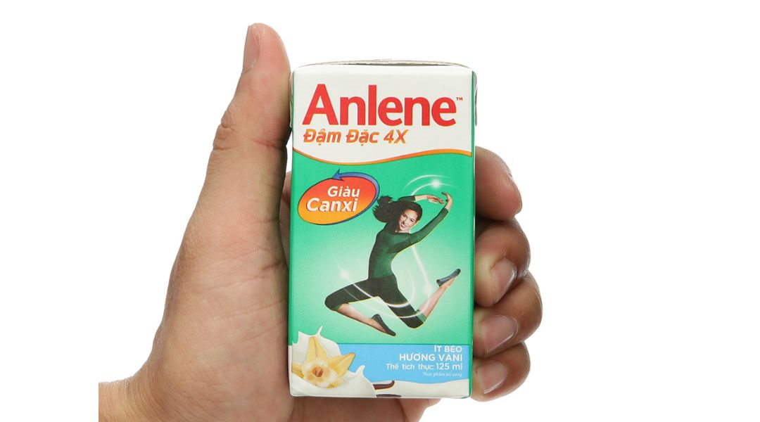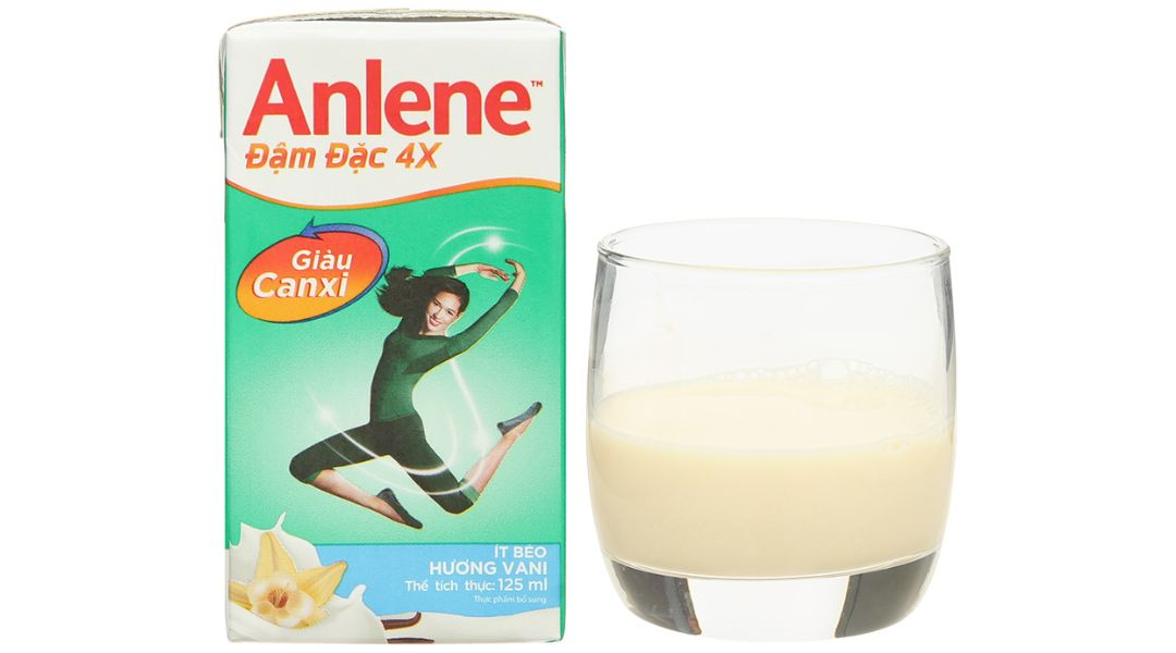 Sản phẩm sữa bột Anlene 4x pha sẵn dạng hộp 125ml tiện dụng, có thể sử dụng ở bất cứ nơi nào và có thể ngay tức thời cung cấp đủ dinh dưỡng cho hệ cơ xương cũng như tăng cường, phục hồi sức khỏe. Theo khuyến nghị dinh dưỡng của Bộ Y Tế, chỉ với 2 hộp Anlene Đậm đặc 4X vani sẽ cung cấp đủ cho người dùng 100% nhu cầu Canxi của cơ thể.