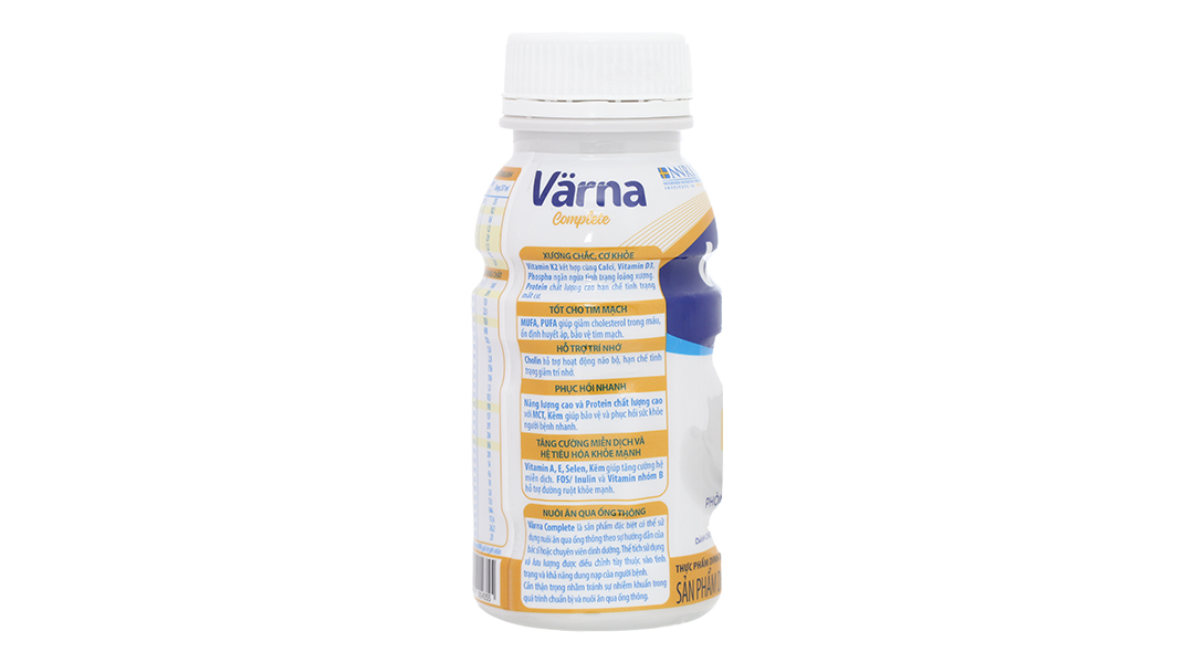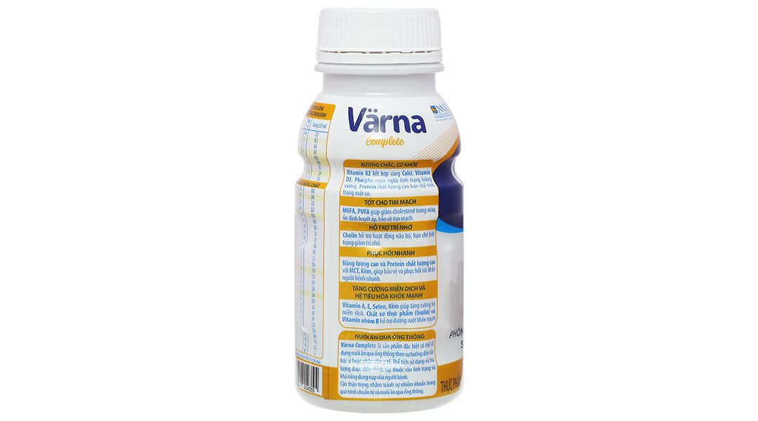 Sản phẩm sữa bột pha sẵn Varna Complete dạng chai đóng sẵn tiện dụng, được pha chuẩn và định lượng theo đúng nhu cầu dinh dưỡng phù hợp một lần uống thích hợp sử dụng cho người lớn tuổi, người bệnh, ăn uống kém cần tăng cường dinh dưỡng và phục hồi sức khoẻ.