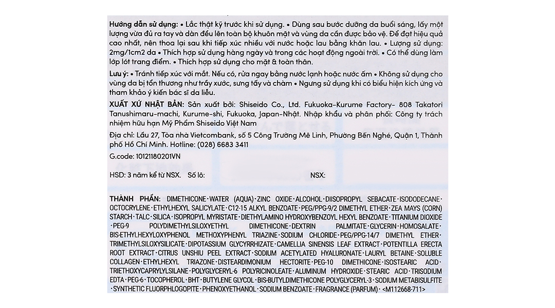 Công dụngChống nắng phổ rộng, giúp dưỡng ẩm, chống oxy hóa và chống lão hóa da