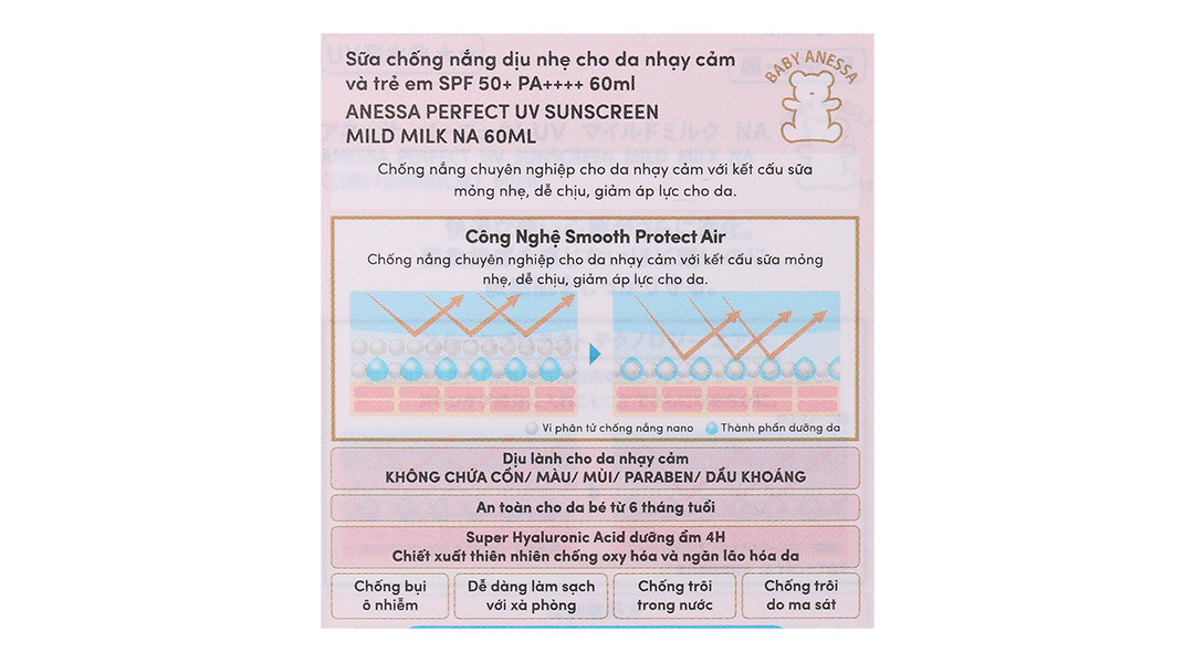 Sữa chống nắng Anessa Mild Milk SPF50+/PA++++ dịu nhẹ cho da nhạy cảm chai 60ml