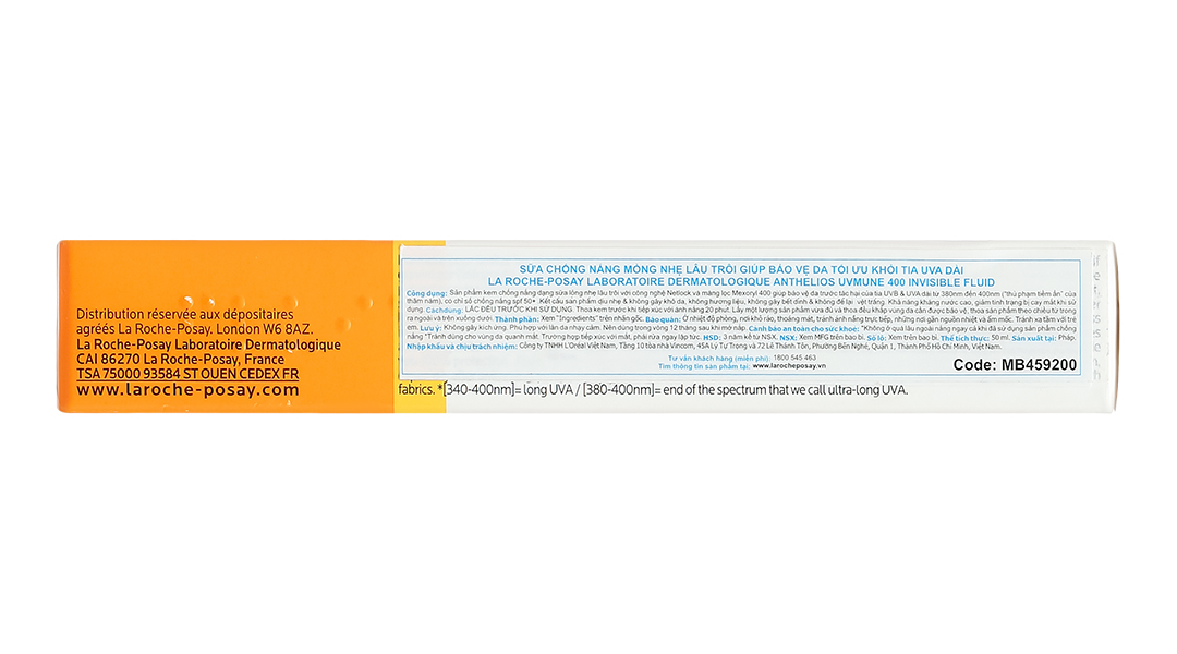 Sản phẩm sữa chống nắng lỏng nhẹ lâu trôi với công nghệ NaUock và màng lọc Mexoryl 400 giúp bảo vệ da trước tác hại của tia UVB & UVA dài từ 380nm đến 400nm (“thủ phạm tiềm ẩn” của thâm nám), có chỉ số chống nắng SPF 50+.