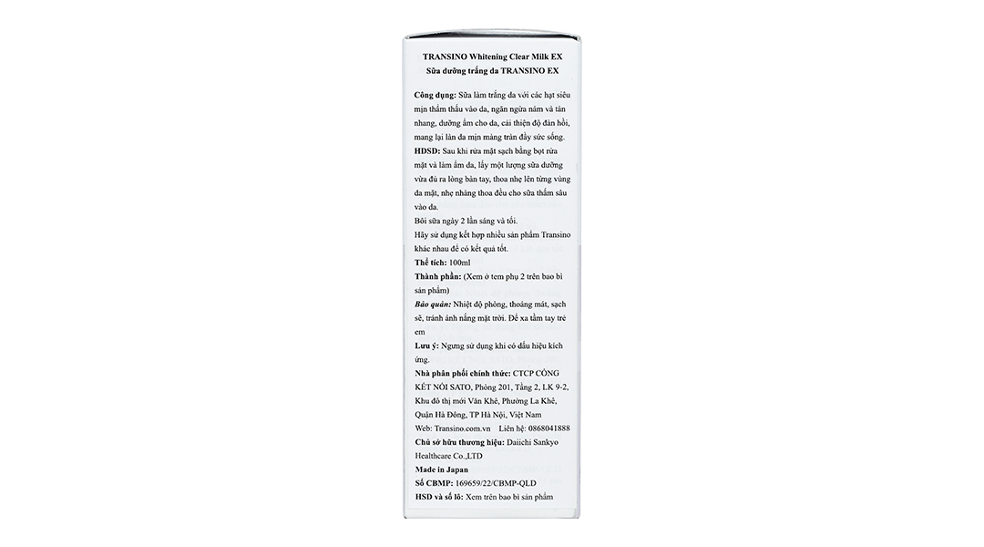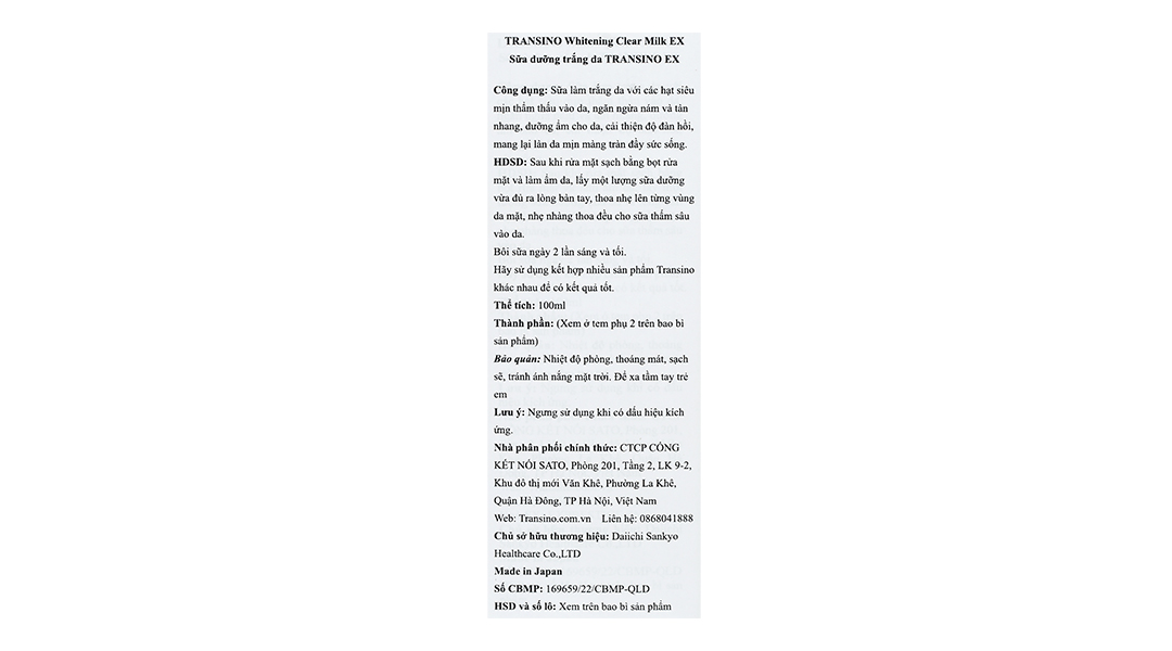 Sữa làm trắng da với các hạt siêu mịn thẩm thấu vào da, ngăn ngừa nám và tàn nhang, dưỡng ẩm cho da, cải thiện độ đàn hồi, mang lại làn da mịn màng tràn đầy sức sống.