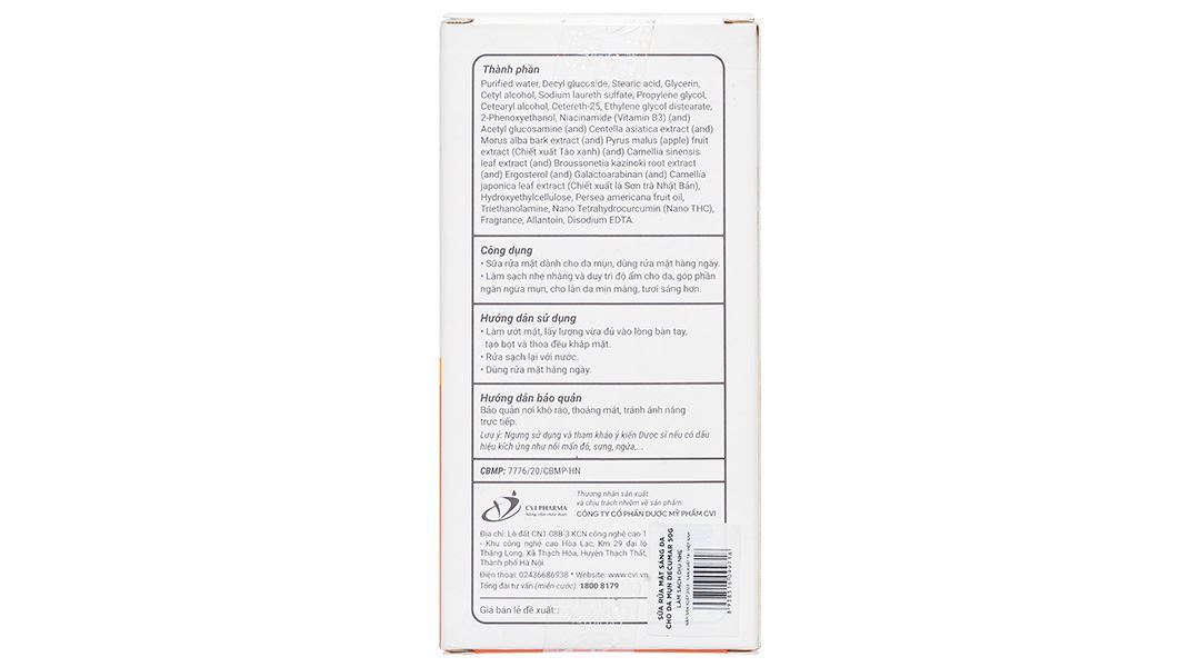 Sữa rửa mặt Decumar Anti-acne Brightening chứa các thành phần sau