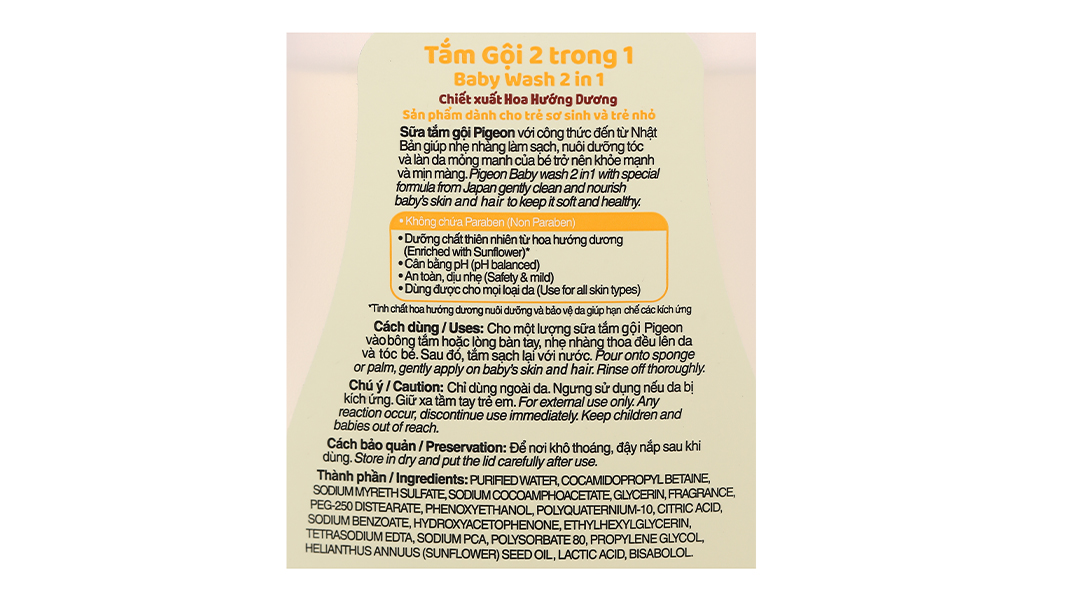 Tắm gội toàn thân Pigeon Hoa Hướng Dương cấp ẩm cho da bé chai 200ml