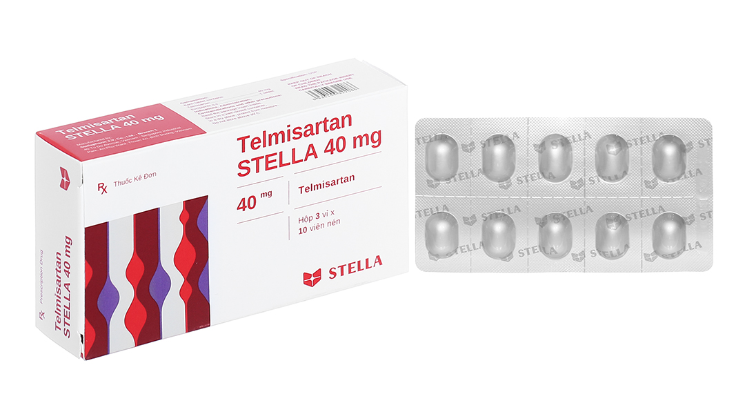 Telmisartan Stella 40mg trị tăng huyết áp, phòng ngừa bệnh tim mạch (3 vỉ x 10 viên)