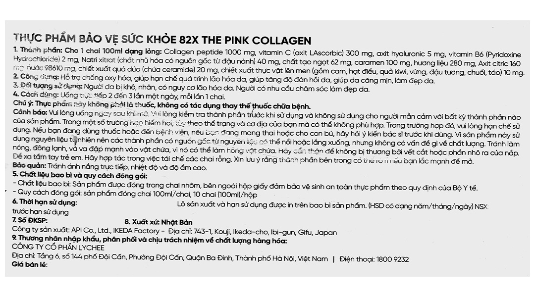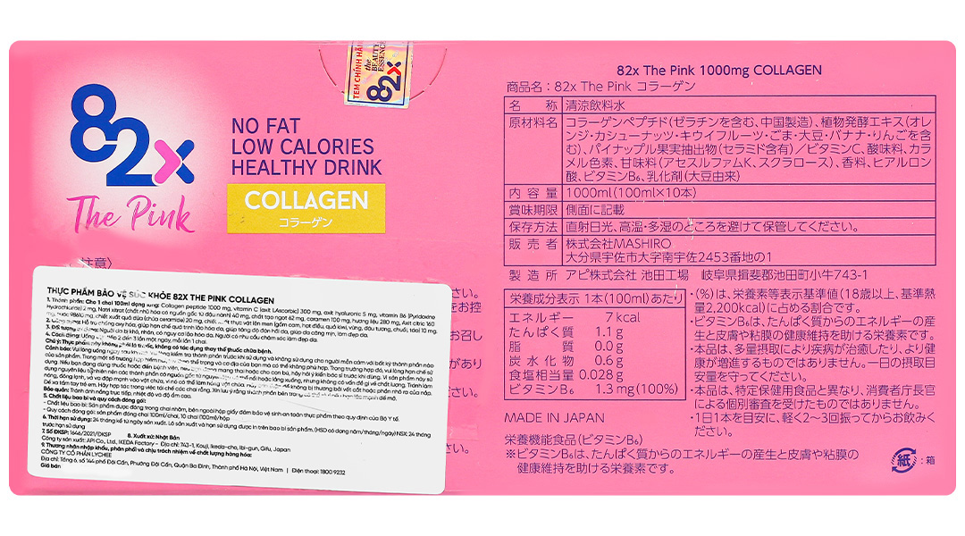 - Nước uống Collagen 82X The Pink cao cấp Nhật Bản vừa giúp làm đẹp da, đồng thời cung cấp lượng dưỡng chất dồi dào, mang đến sức sống căng tràn cho ngày mới tươi trẻ. Sản phẩm được nhập khẩu trực tiếp và độc quyền từ thương hiệu Mashiro Nhật Bản.