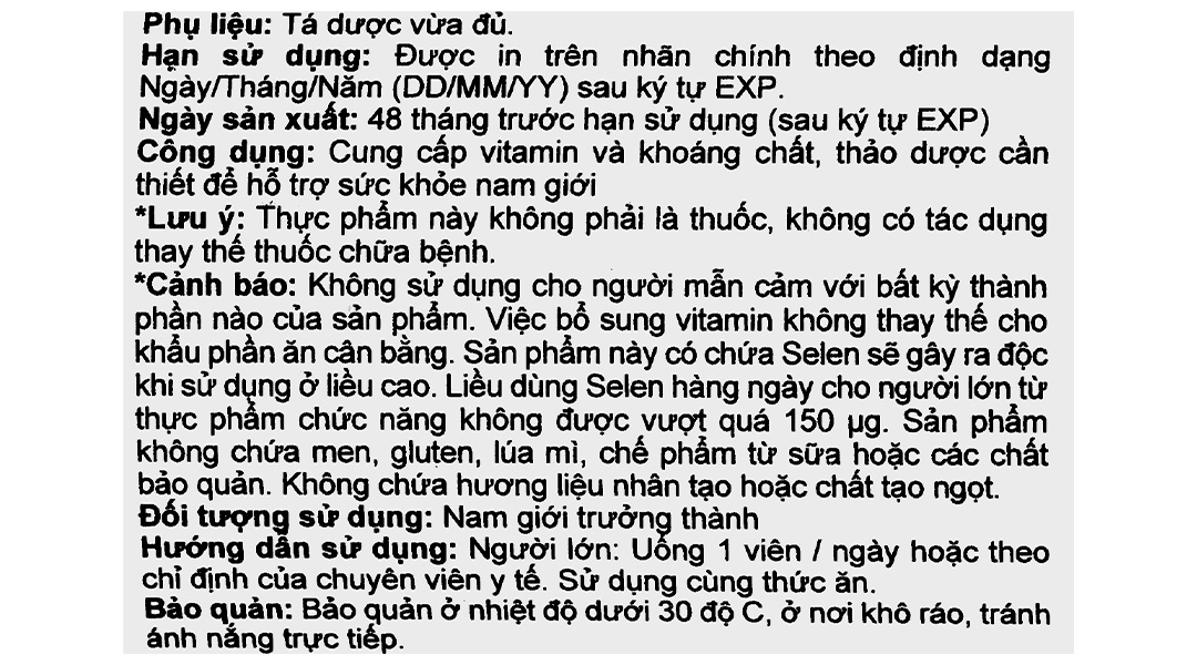 - Blackmores Multivitamin For Men được bổ sung tới 17 dưỡng chất và 4 loại thảo dược tự nhiên, đa dạng giúp nâng cao sức khỏe và bản lĩnh đàn ông ở nhiều khía cạnh, đặc biệt là chức năng sinh lý. Với thành phần chiết xuất cây tribulus terrestris và turnera diffusa giúp tăng cường sản sinh testosterone, giúp nam giới tăng cường sinh lực, cải thiện chất lượng hoạt động tình dục và giảm các triệu chứng của bệnh xuất tinh sớm. Bên cạnh đó, sản phẩm còn chứa kẽm – một nguyên tố được coi như khoáng chất ‘vàng’ cho sức khỏe sinh sản và tình dục. Nhờ đó, Blackmores Multivitamin For Men trở thành một trong những thực phẩm chức năng tăng cường sinh lý tuyệt vời cho nam giới.