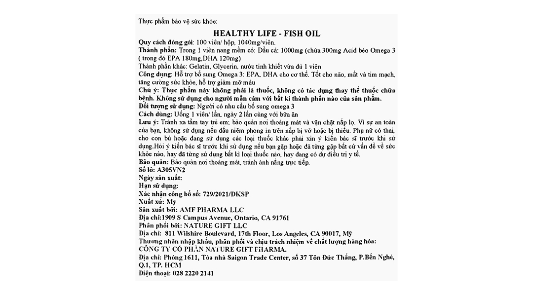Dầu cá Healthy Life hỗ trợ bổ sung Omega 3, tốt cho não, mắt và tim mạch hộp 100 viên