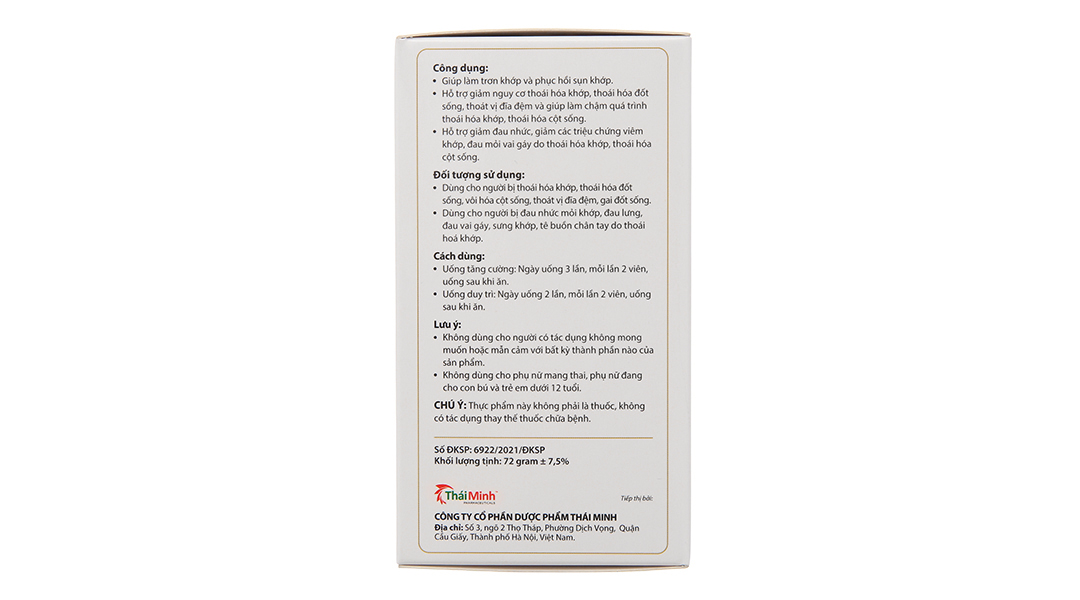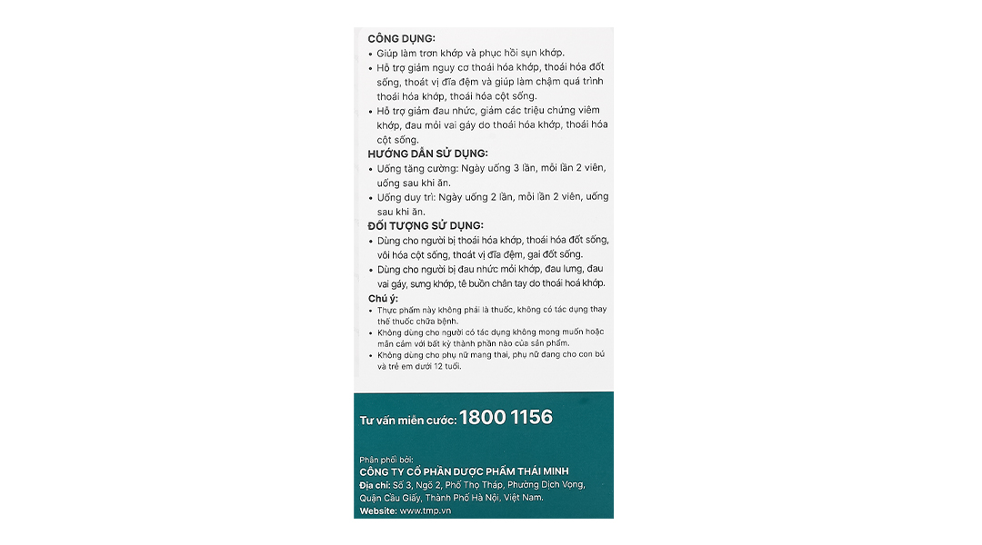 Công dụngHỗ trợ giảm nguy cơ thoái hóa khớp, thoái hóa đốt sống, thoát vị đĩa đệm