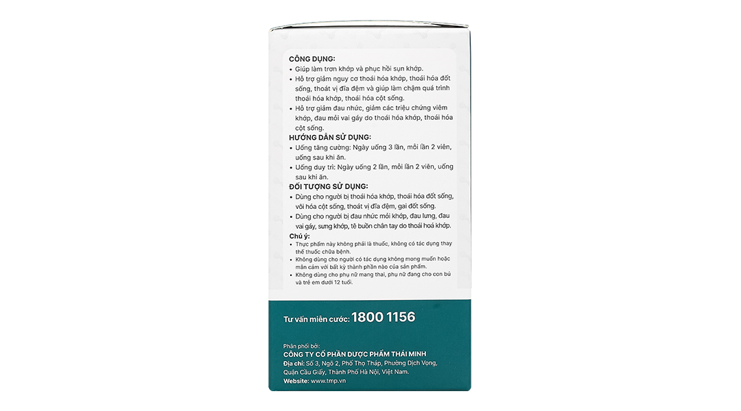 Đối tượng sử dụngNgười trên 12 tuổi bị thoái hóa khớp, thoái hóa đốt sống, vôi hóa cột sống,...