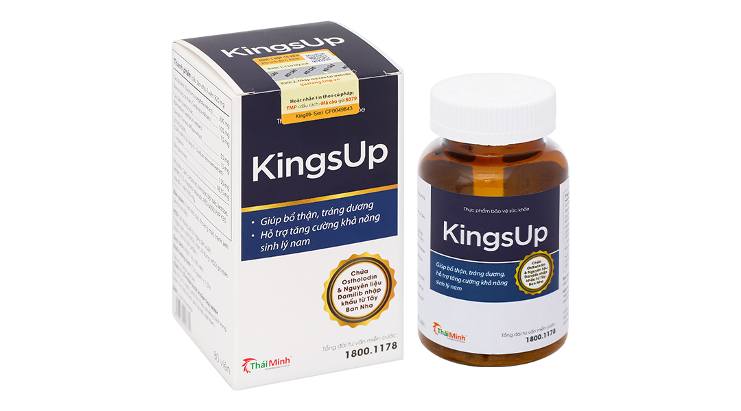 - Viên uống KingsUp là thực phẩm chức năng với các chiết xuất thảo dược thiên nhiên với công dụng bổ thận tráng dương, tăng cường sinh lý nam và hạn chế quá trình mãn dục sớm. Sản phẩm là sự kết hợp độc đáo giữa y học cổ truyền và y học hiện đại giúp phát huy tối đa công dụng của các thành phần trong nó.
