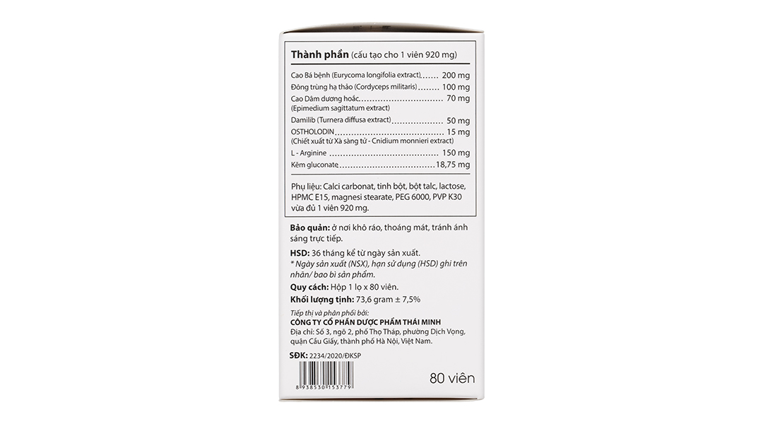 - OSTHOLODIN: Chiết xuất xà sàng tử, tác dụng tăng tưới máu dương vật.