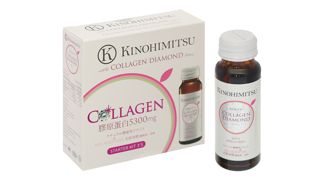 Nước uống Kinohimitsu Collagen Diamond hỗ trợ làm đẹp da hộp 3 chai x 50g