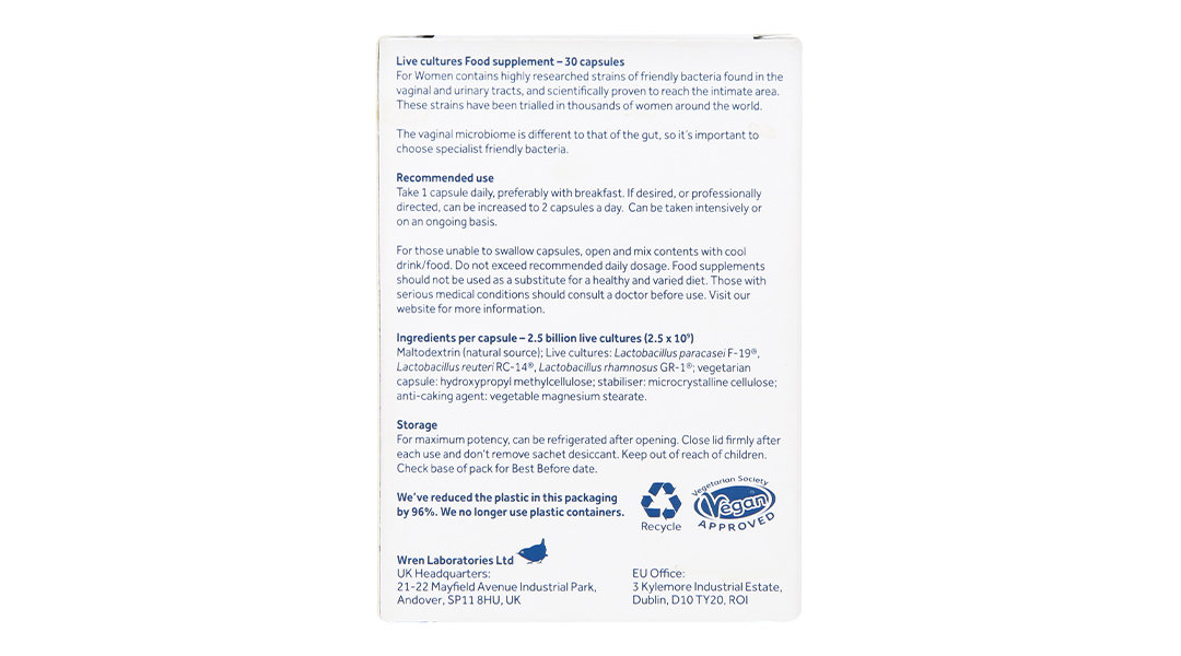 – Phòng ngừa viêm tái phát: Kết quả thử nghiệm lâm sàng cho thấy lợi khuẩn trong viên uống Optibac Intimate Flora For Women sản sinh hydrogen peroxide giúp tăng cường miễn dịch nơi âm đạo, ức chế mầm bệnh phát triển, và ngăn ngừa tái phát viêm nhiễm (đặc biệt là với người có nguy cơ tái phát cao, phụ nữ trong chu kỳ kinh nguyệt và phụ nữ cao tuổi).