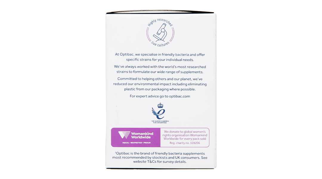 – Hỗ trợ điều trị viêm phụ khoa: Các thử nghiệm lâm sàng với các chủng lợi khuẩn có trong viên uống Optibac Intimate Flora For Women trên hàng nghìn phụ nữ khắp thế giới đã được chứng minh hiệu quả điều trị các triệu chứng viêm phụ khoa phổ biến như nấm âm đạo (candida), viêm bàng quang, hay nhiễm khuẩn âm đạo.