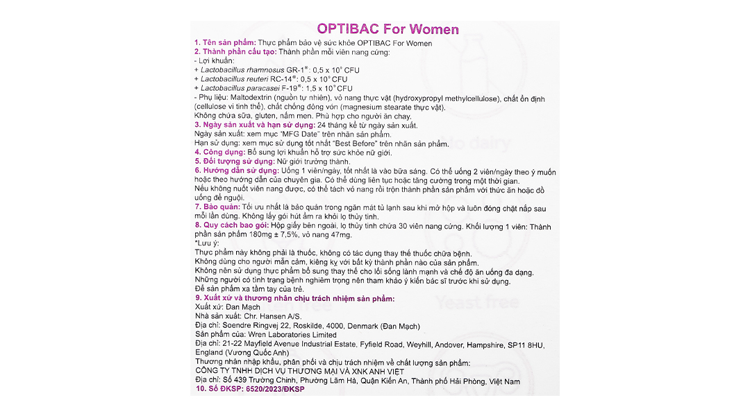 - Optibac Flora là sản phẩm được sản xuất đặc biệt dành cho phụ nữ, cung cấp ít nhất 2,5 tỷ vi khuẩn sống trên mỗi viên nang, từ đó giúp ngăn các vi khuẩn gây bệnh và bảo vệ sức khỏe vùng kín.
