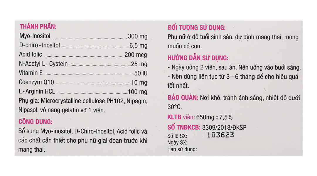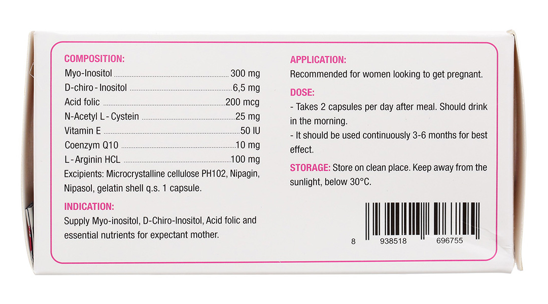 Bổ sung Myo-inositol, D-Chiro-Inositol, Acid folic và các chất cần thiết cho phụ nữ trong giai đoạn trước khi mang thai.